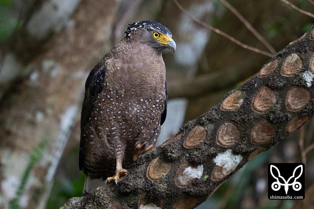 カンムリワシ成鳥。獲物を食い終わっていつもの止まり木に帰る。