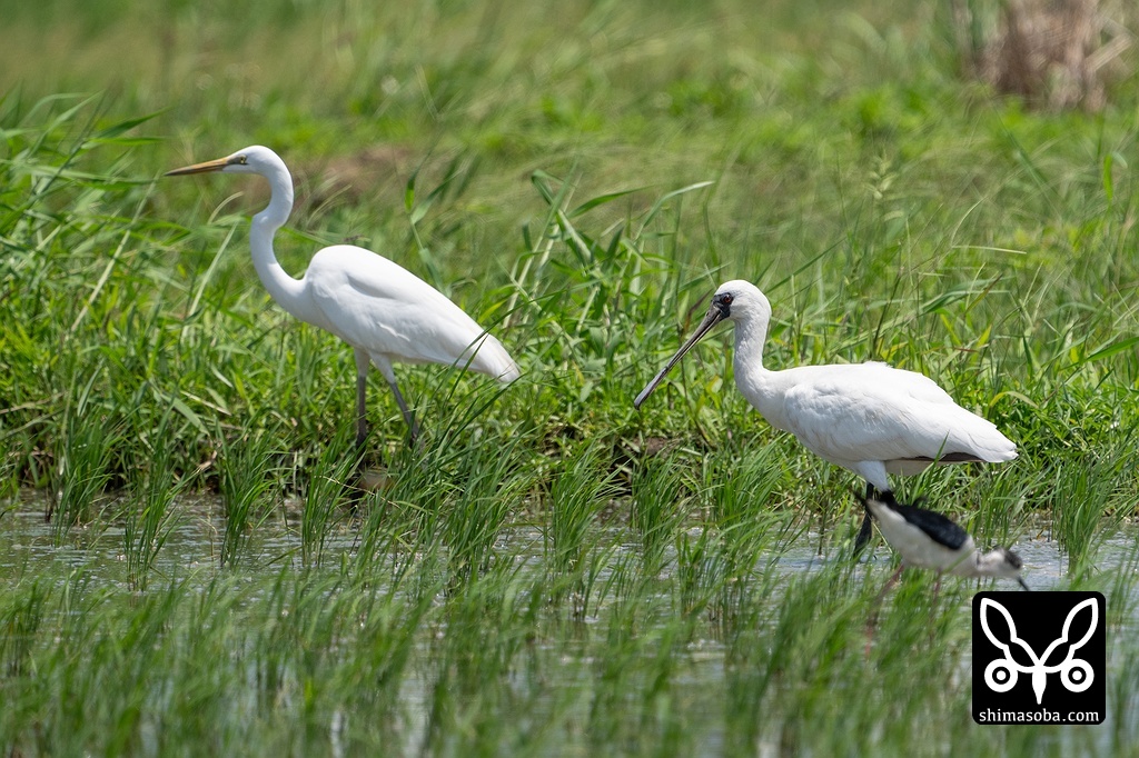 田んぼには、クロツラヘラサギ、ヘラサギ、アカガシラサギなども次々と飛来しています。