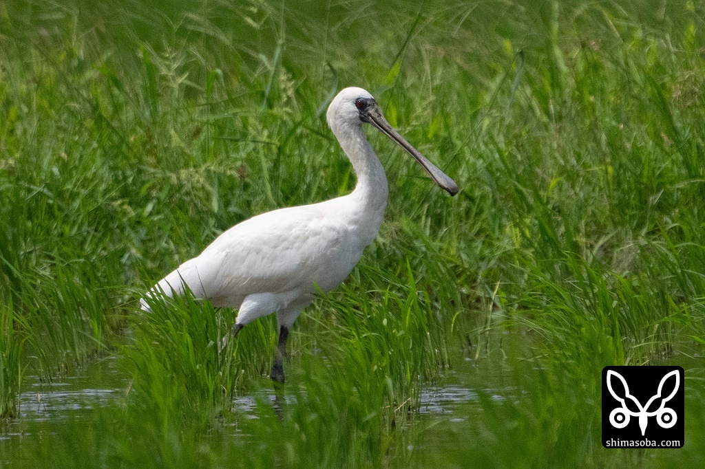 田んぼのクロツラヘラサギ。若い個体です。