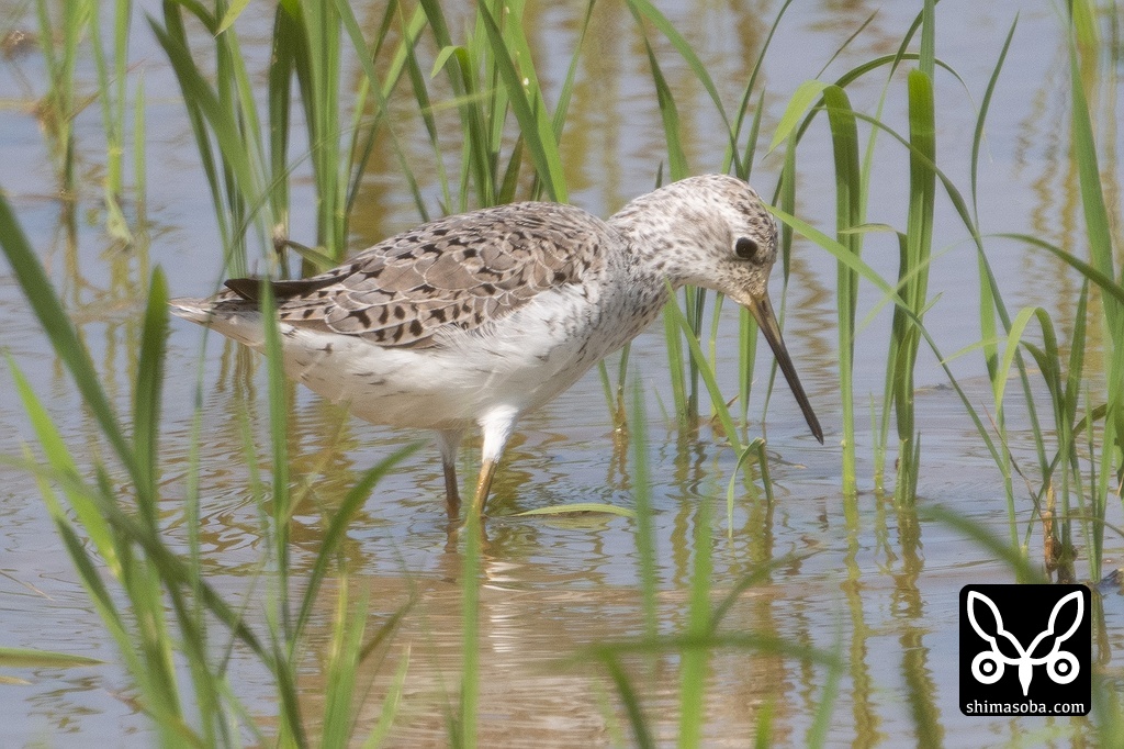 コアオアシシギは夏羽に変わりつつありますが、まだ冬羽を残しています。