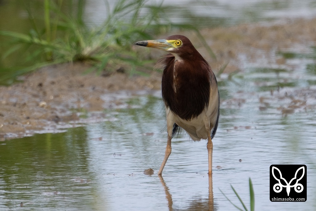 アカガシラサギ夏羽。婚姻色も若干出ています。