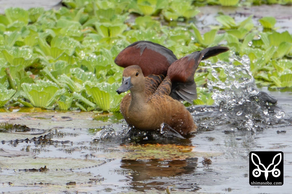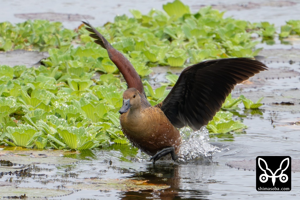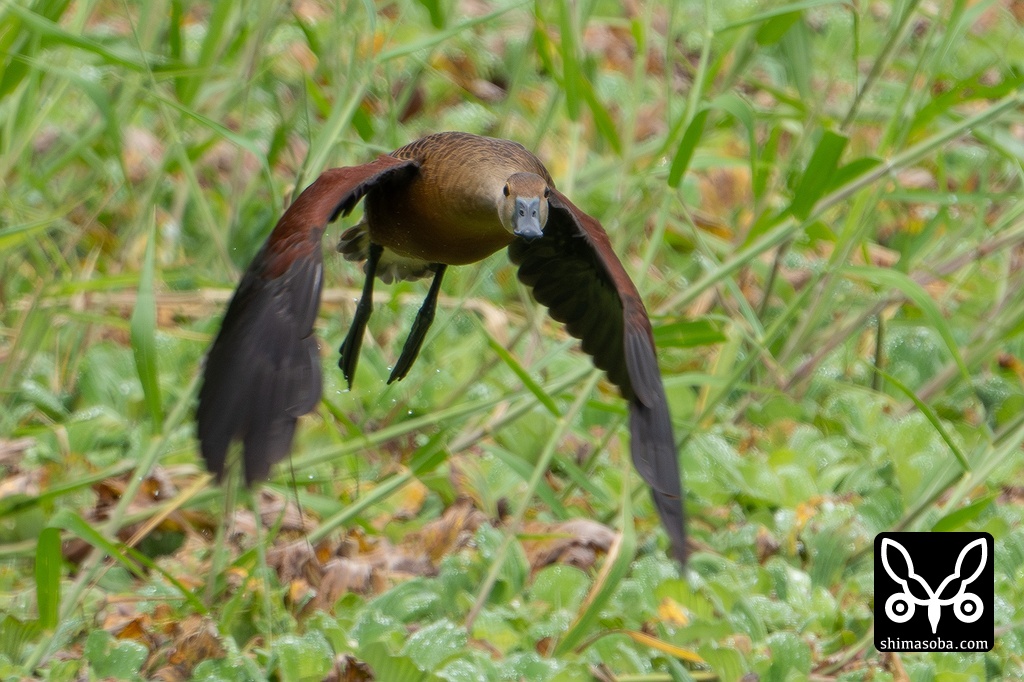 休んでいた草むらから飛び出したリュウキュウガモ。ほぼ垂直に離陸しました。