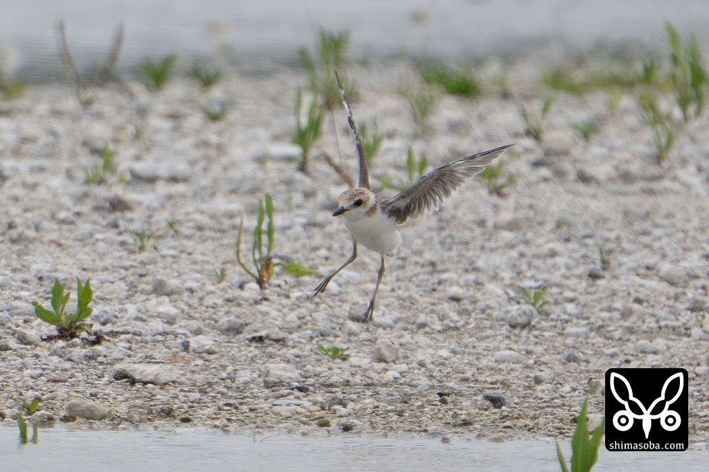 少し飛べるようになったシロチドリのヒナ。