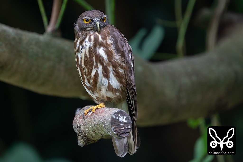 アオバズクのメス。巣の近くで見張り。