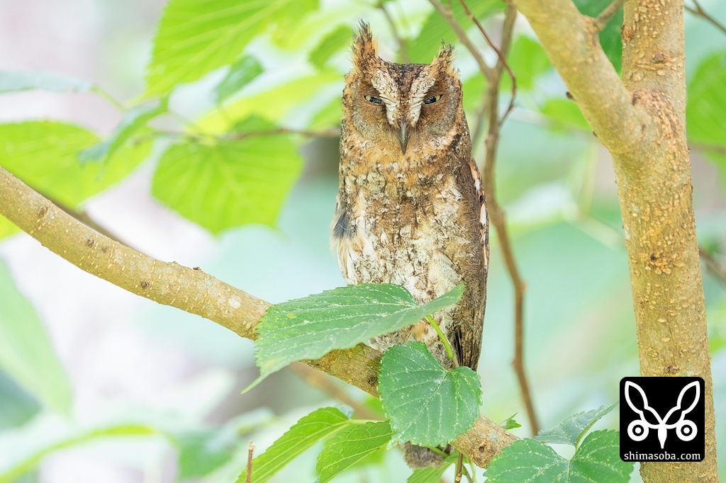 リュウキュウコノハズクの見張りは、いつもよりも低い木にいました。今月末ごろにはヒナが巣立つと思います。