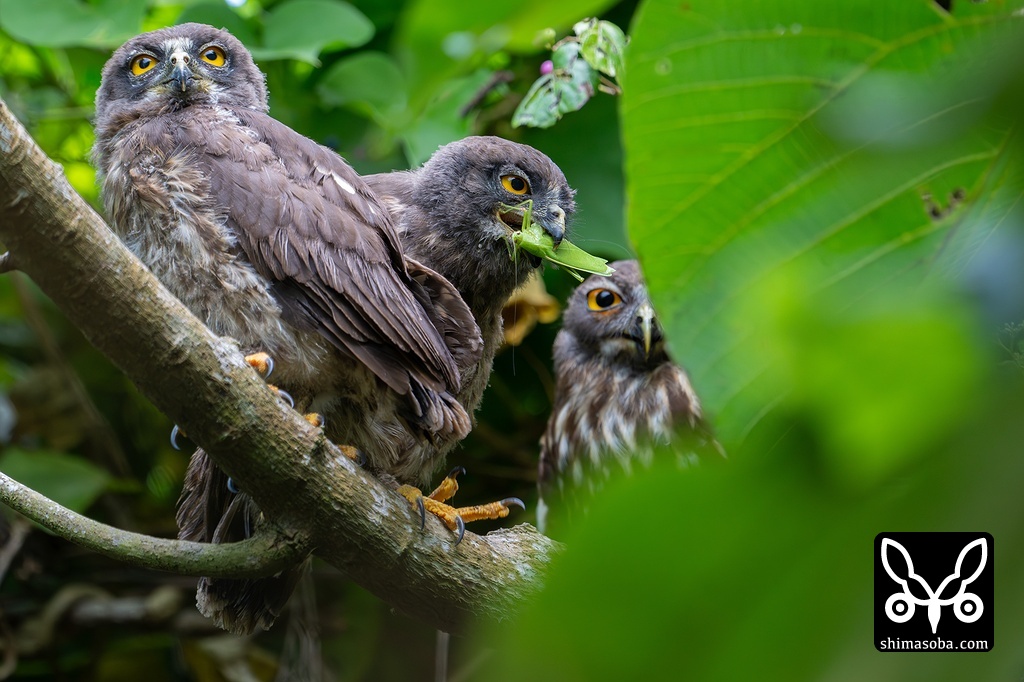 今季の巣立ち第1号はリュウキュウアオバズクでした。昨年と同じ場所で2羽が無事に巣立ちました。アオバズクの巣立ちといては、かなり早いタイミングでした。