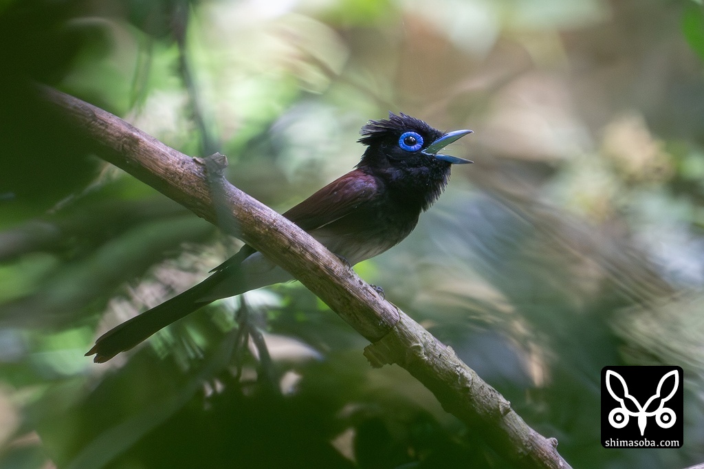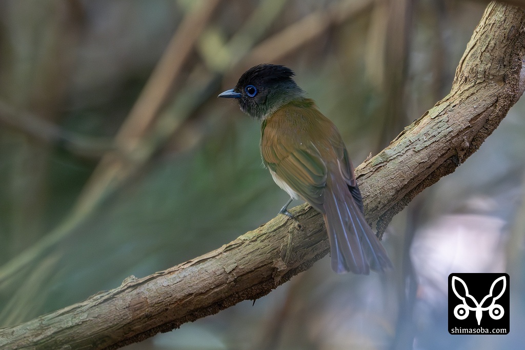 低い枝を伝って移動していたリュウキュウサンコウチョウのメス。子育て中だと思われますが、詳細は不明です。