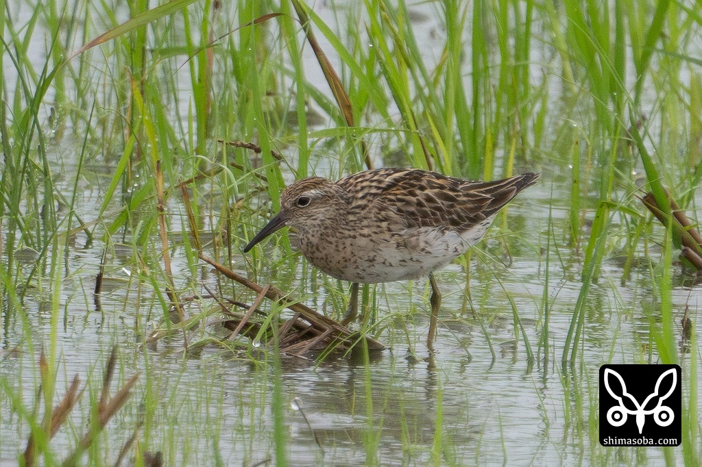 ウズラシギ夏羽後期。あちこちで見るようになりました。