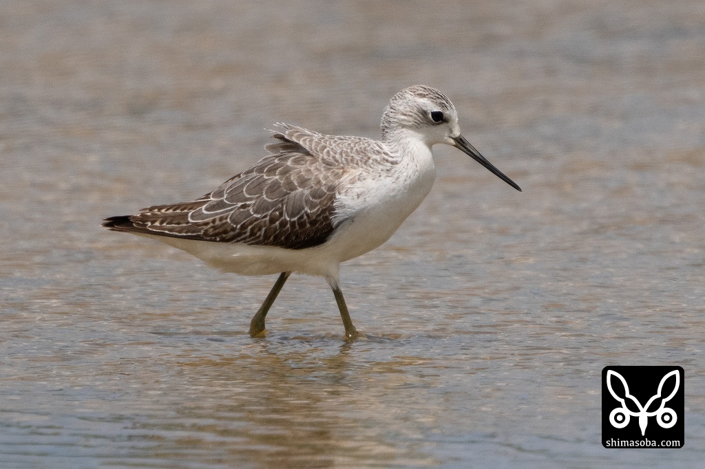 今季初のコアオアシシギ幼鳥。第1回冬羽になっています。