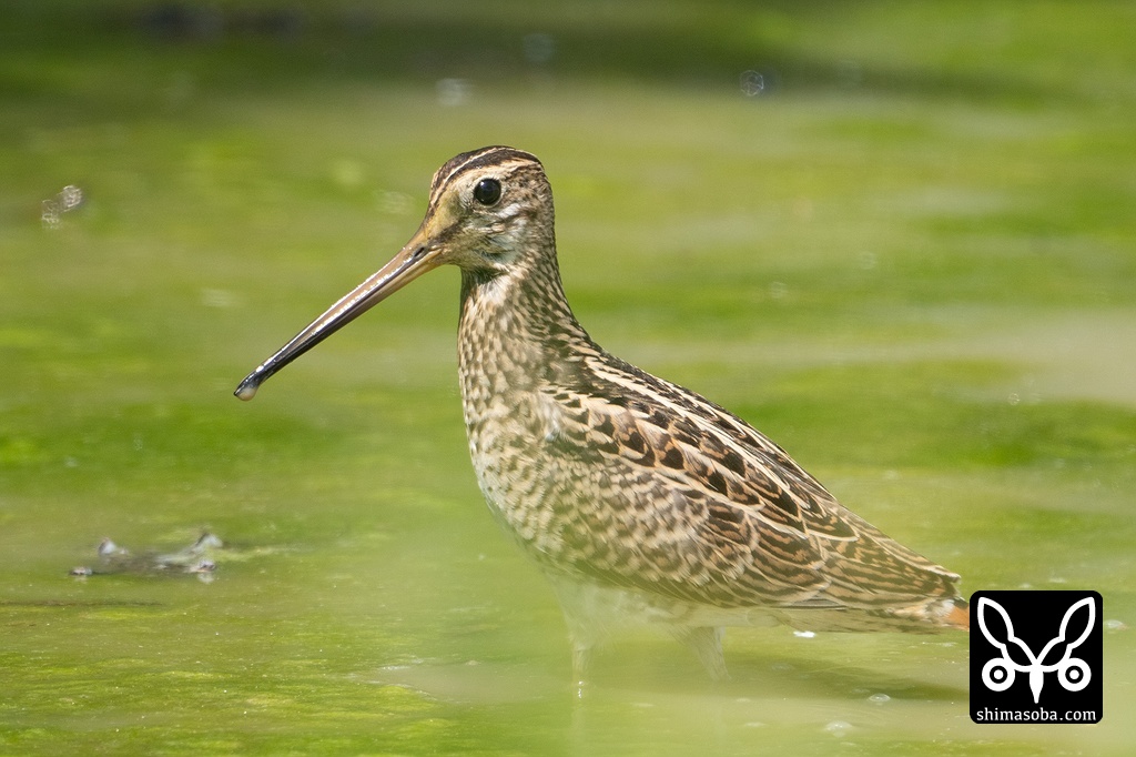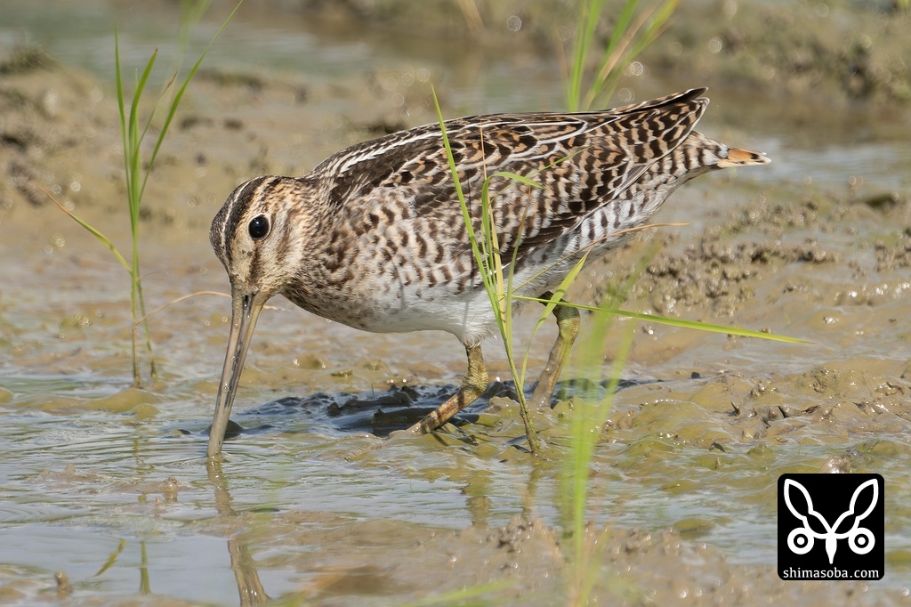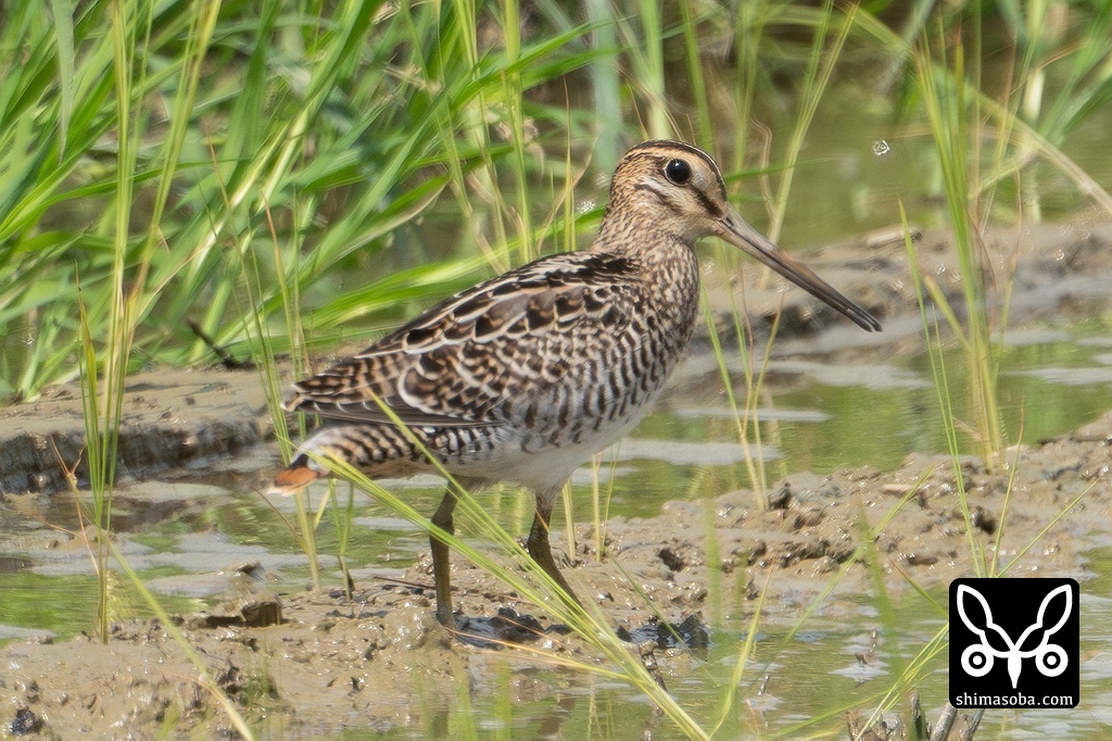 チュウジシギ幼鳥。角度によっては外側尾羽は針のように見えます。ハリオシギとの違いは長さに注目してください。