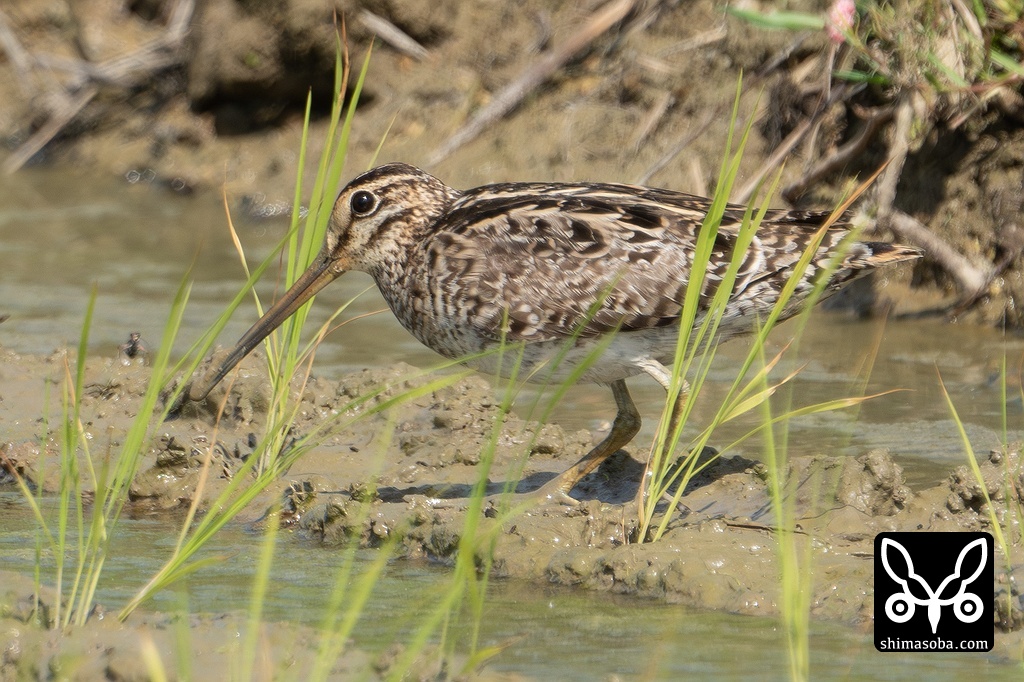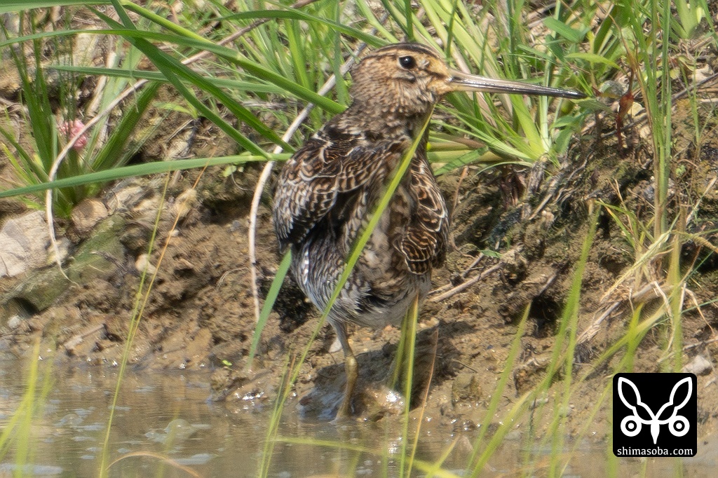 尾羽は細いのですが、この状態で見えるぐらい長い。ハリオシギとチュウジシギの交雑とかもあるのでしょうか?