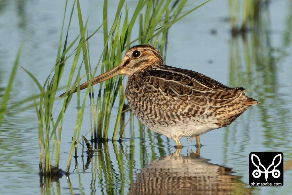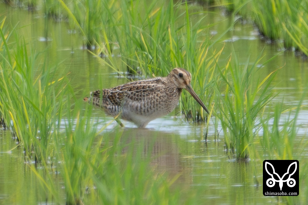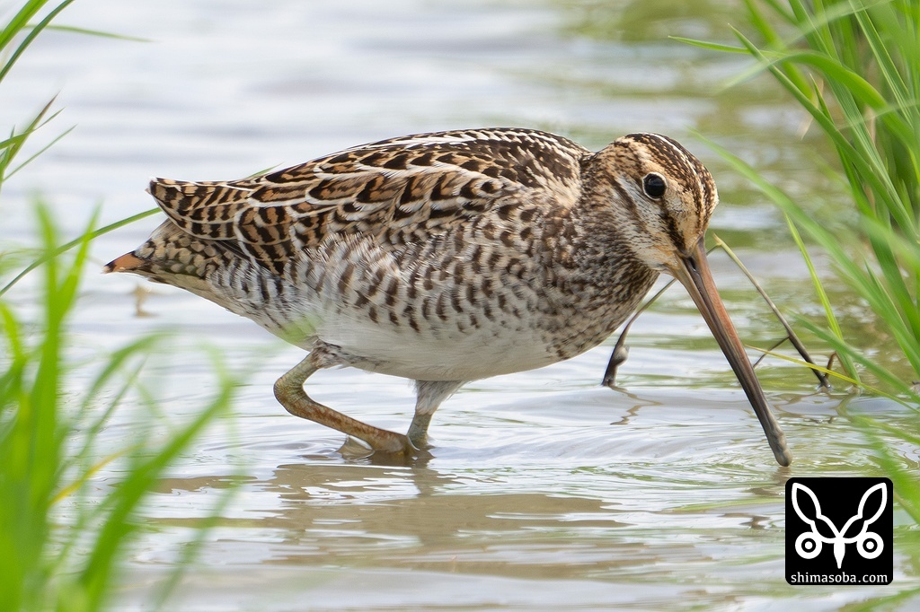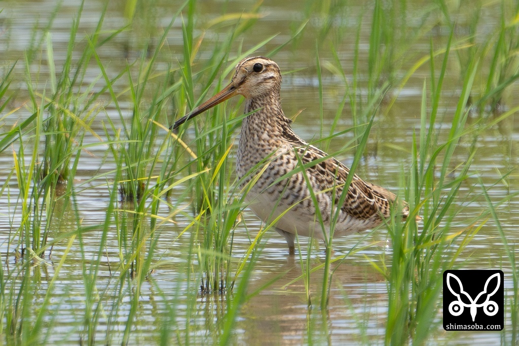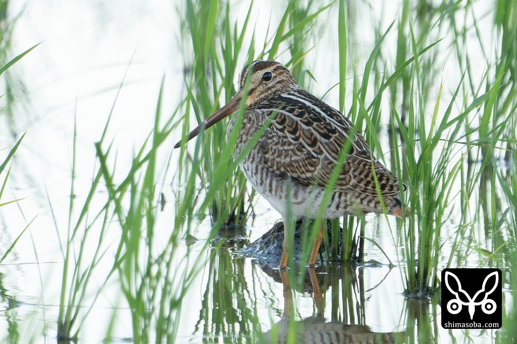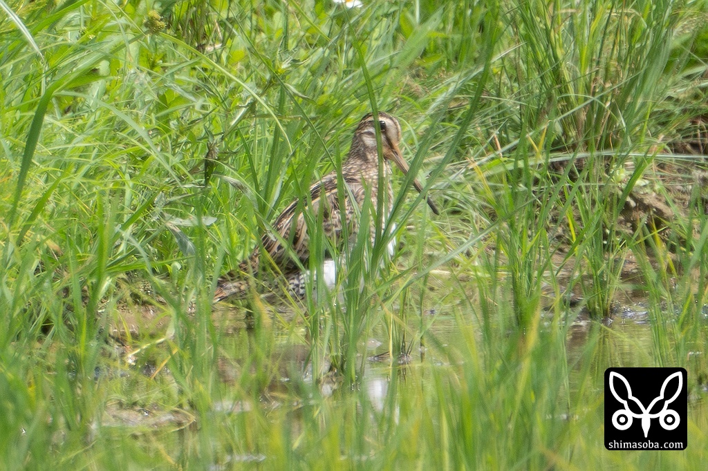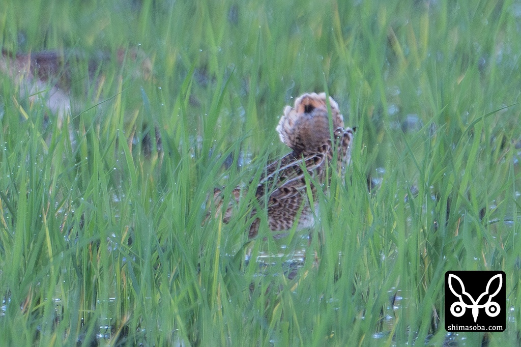 こんな感じでもチュウジシギなので気をつけましょう。体や尾羽の角度で細く見えたり、短く見えたりするのでジシギの識別は要注意です。