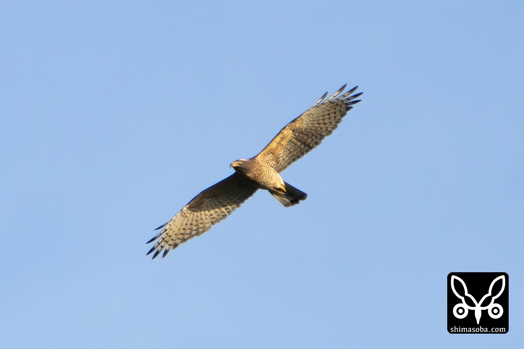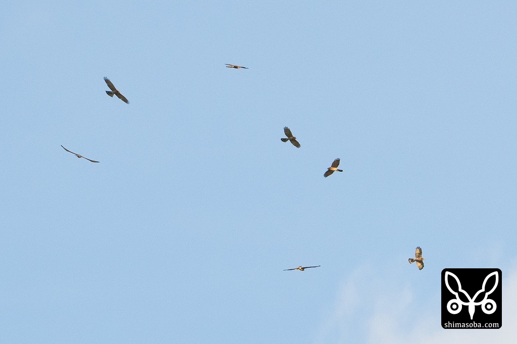 農地から撮影したサシバ。宮古島は山がないので、農地や住宅街などからもタカ柱を見ることができました。