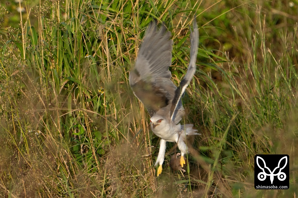 狩りは成功したようで、ネズミをつかんでいます。