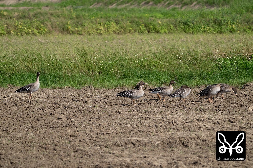 滞在中のヒシクイ。警戒心は薄れてきているようです。