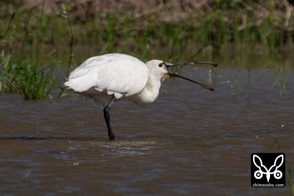 ヘラサギ成鳥。小さな巻貝を大量に食っていた。