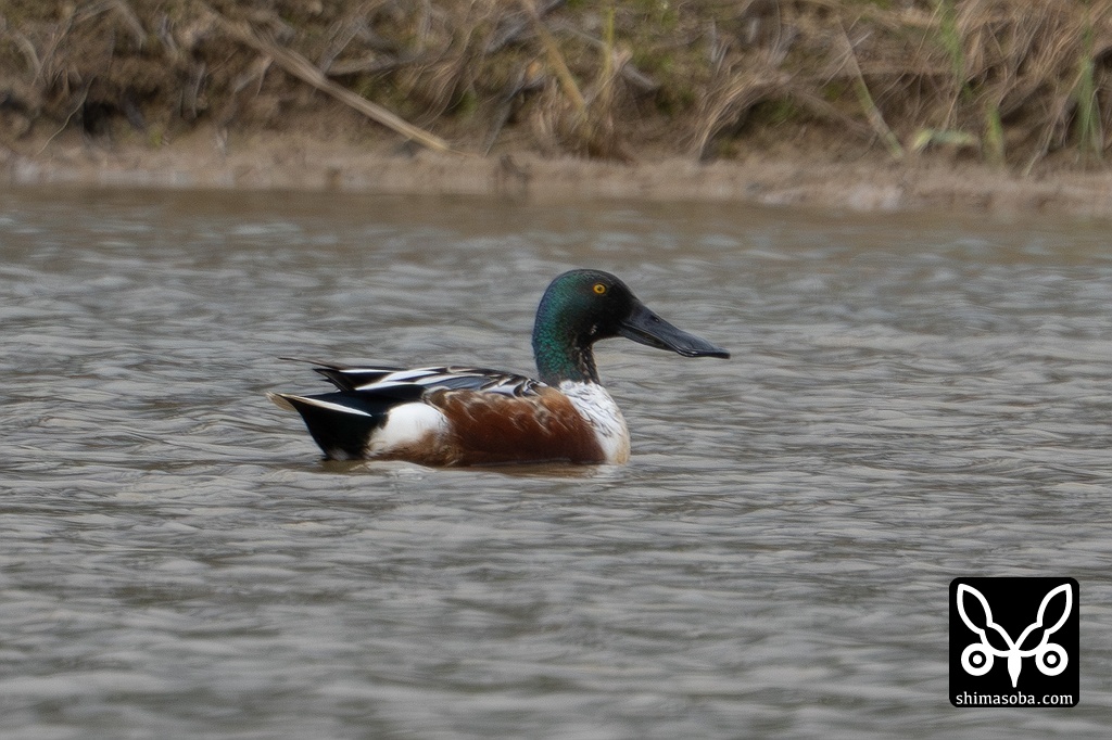 ハシビロガモのオス。石垣島で一番個体数が多いかもです。