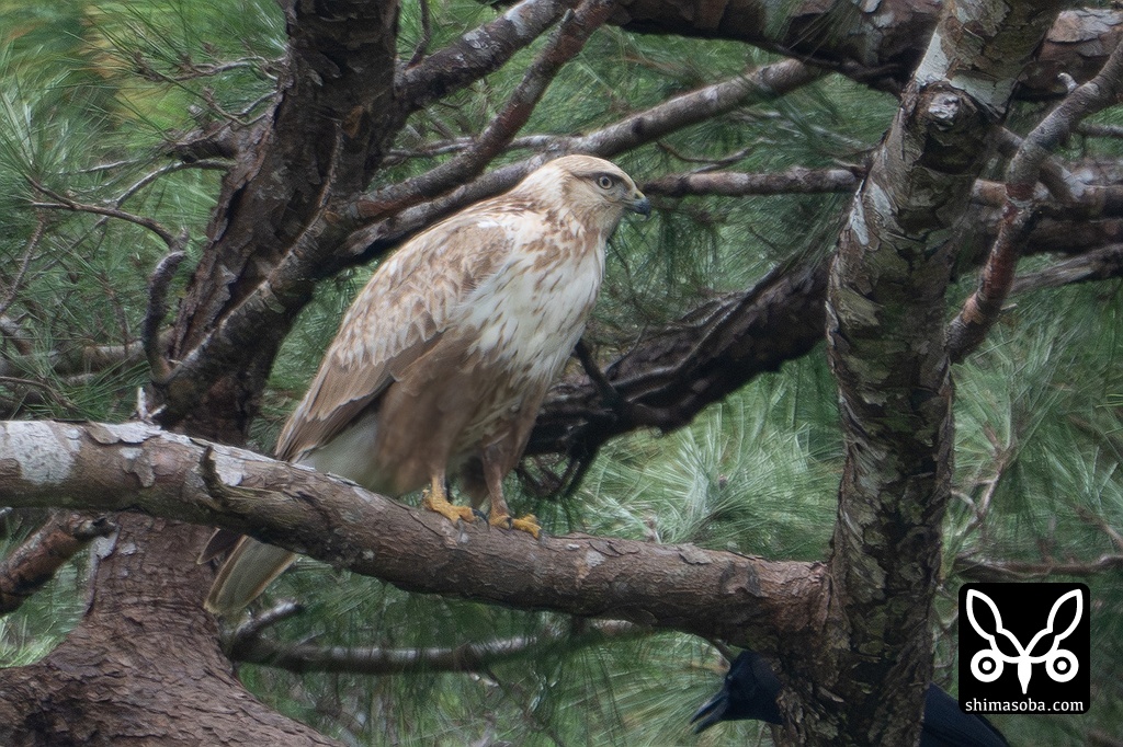 別のエリアのオオノスリ。こちらも幼鳥でした。このリュウキュウマツがねぐらのようです。
