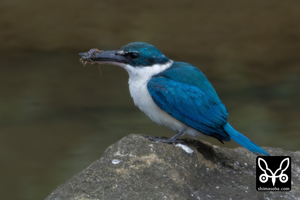 ムカデを捕まえたナンヨウショウビン。アカショウビンもカンムリワシもイソヒヨドリも鳥類はムカデが大好物のようです。