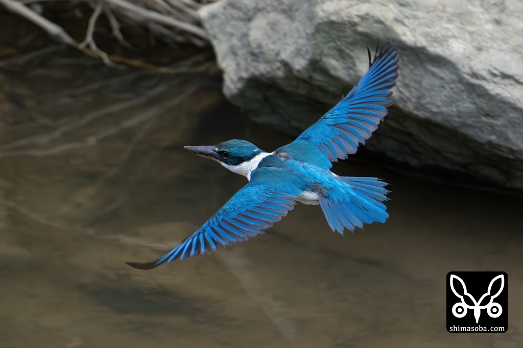 徒歩で近づいた鳥屋に驚いて飛んだナンヨウショウビン。尾羽のT1とT2は換羽しているようです。
