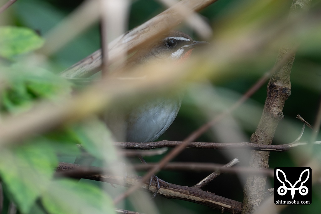 朝方のノゴマ。地鳴きしながら藪の中を移動していました。