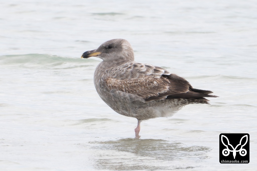 日本初記録のアメリカオオセグロカモメ。長逗留中で幼羽から第1回冬羽へ変わっていました。