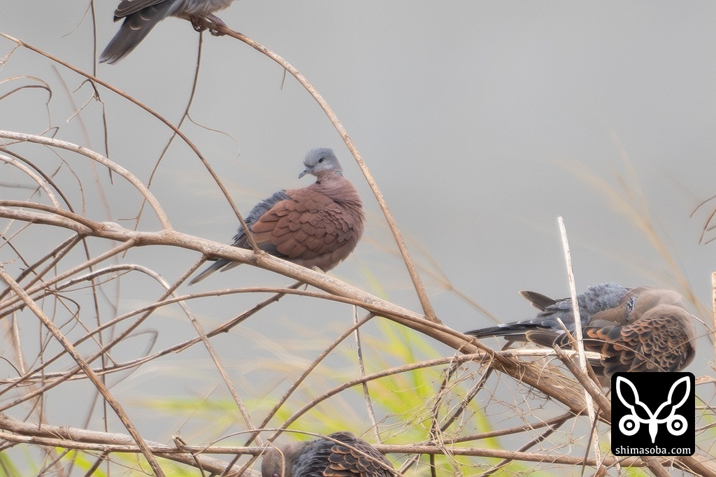 ベニバトのオスはキジバトの群れに混じっていました。石垣島では、お馴染みの光景です。