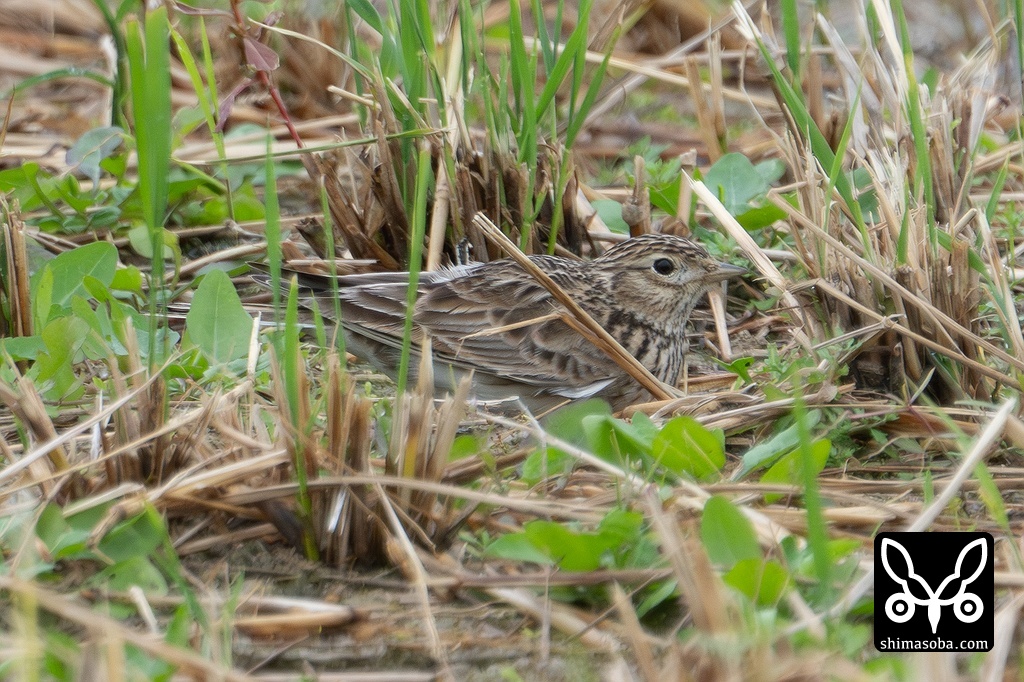 石垣島はもちろん沖縄全体でも飛来が少ないヒバリ。ムネアカタヒバリの群れを見ていたら鳴き声がしたので端からサーチしたらいました。