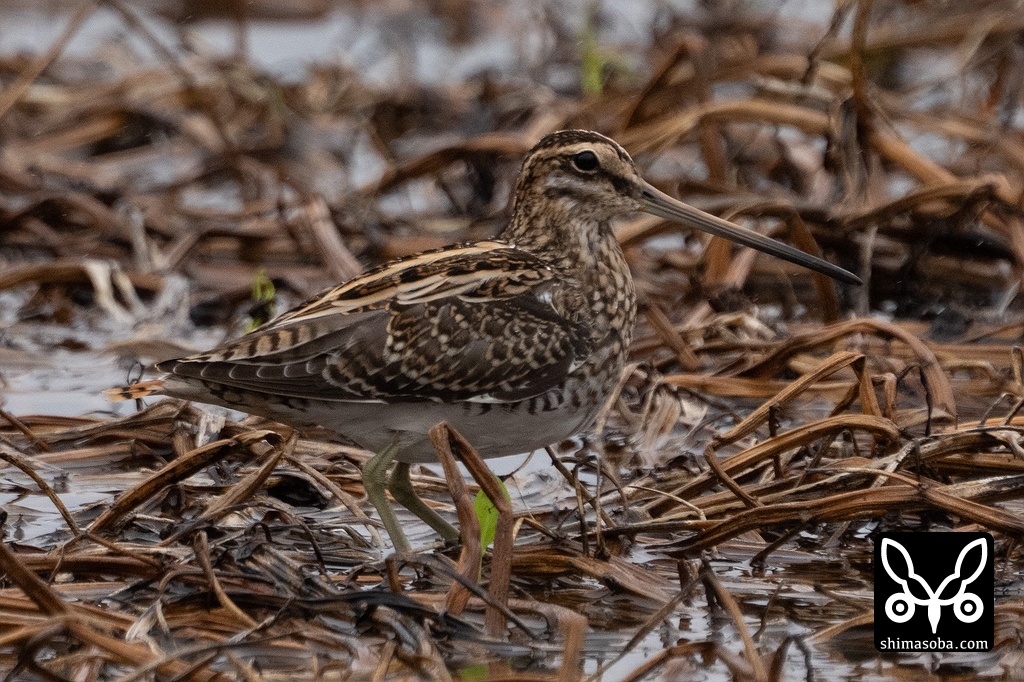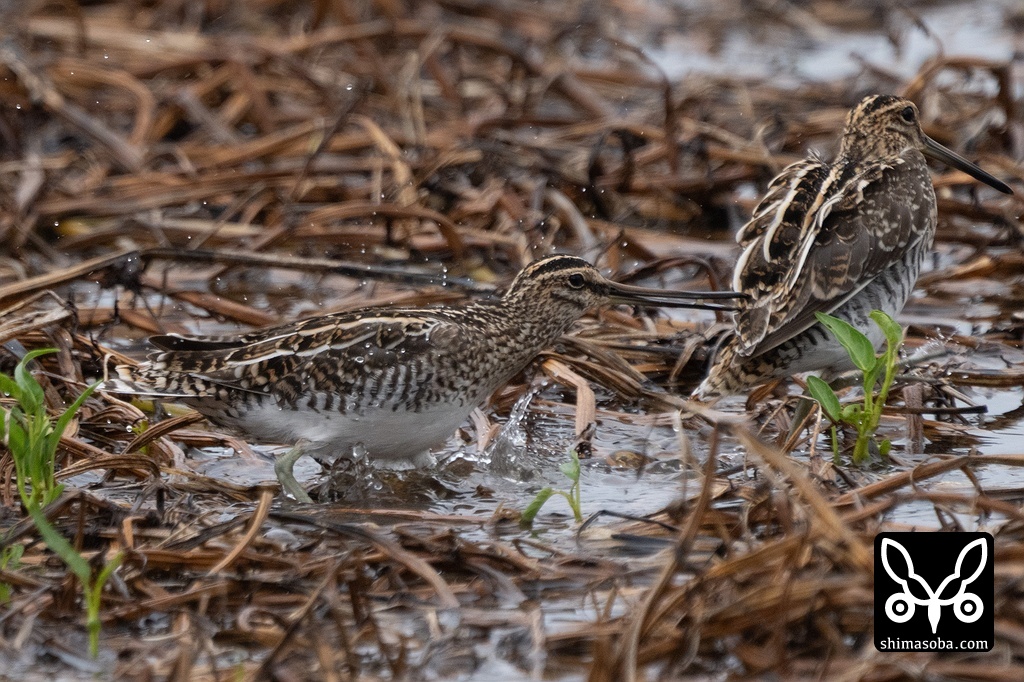 越冬組のタシギ。小さな湿地に数羽が逗留中。