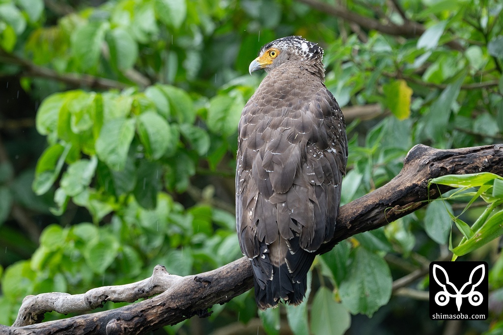 いつもの縄張りで悠然と獲物を待ち伏せるカンムリワシ。