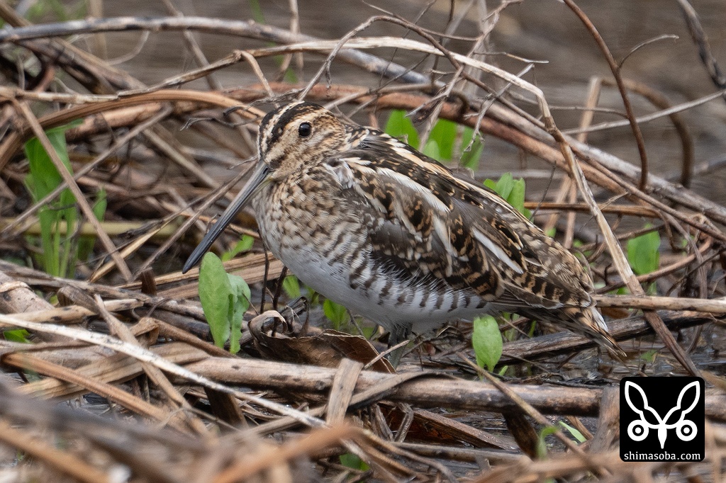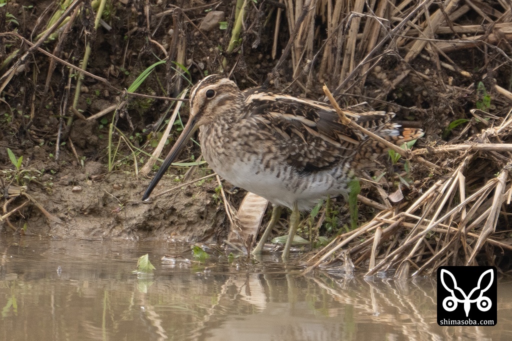 昨年秋からいるアカガシラサギは相変わらず冬の装いのまま、同じ田んぼには春の渡りでオジロトウネンが数羽飛来しました。タシギは越冬組が田植えなどの作業の影響でばらけていました。