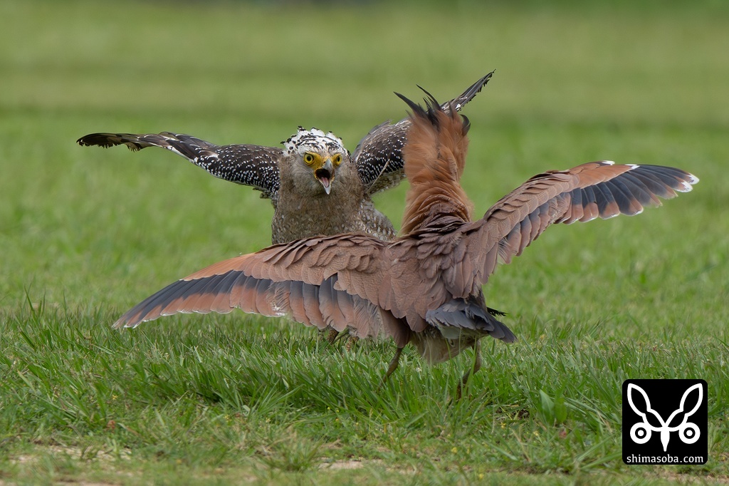 ズグロミゾゴイに襲いかかったカンムリワシ。