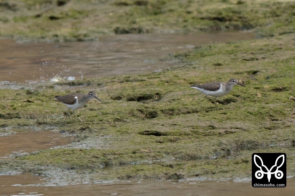 イソシギの幼鳥(右)は今季初確認。