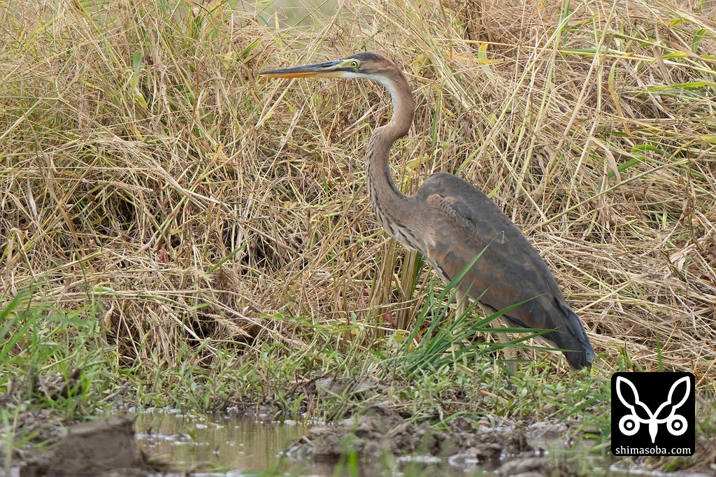 ムラサキサギの幼鳥。これからどんどん増えて成鳥に追い払われる姿をよく見るようになります。