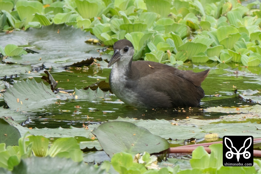 シロハラクイナの幼鳥。真っ黒のヒナをつれたペアにもよく遭遇します。ワンシーズンで複数回の繁殖を行うのかもしれません。
