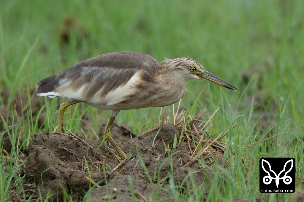 単独で現れたジャワアカガシラサギ。田んぼでオタマジャクシや昆虫を捕まえていました。
