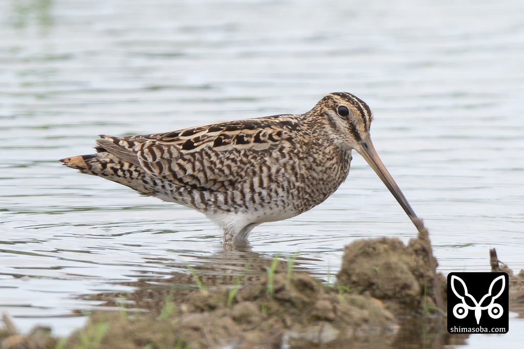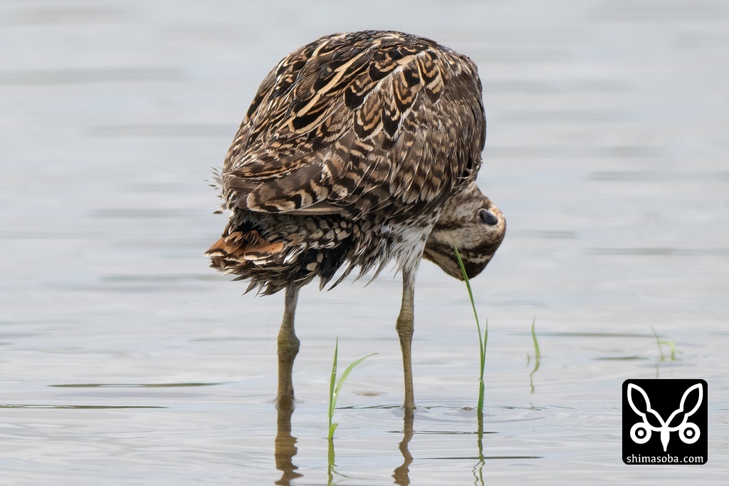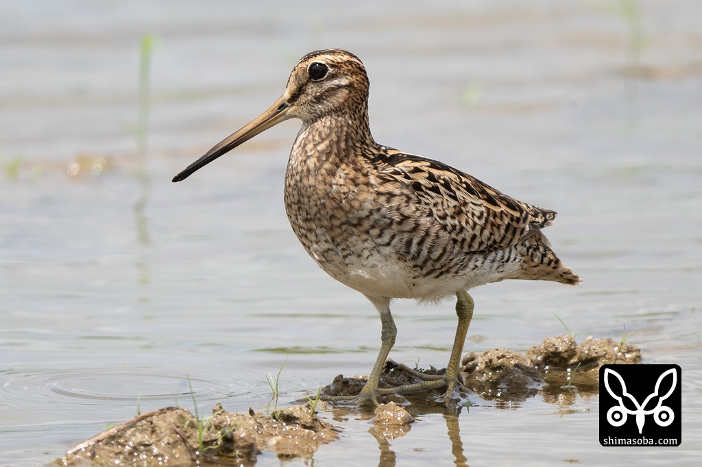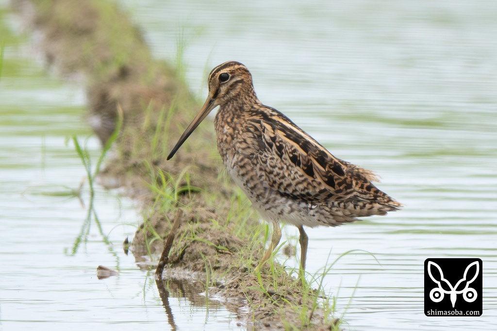 こちらもチュウジシギ成鳥。下の個体も合わせて、初認3日後の同じ田んぼの追加組。