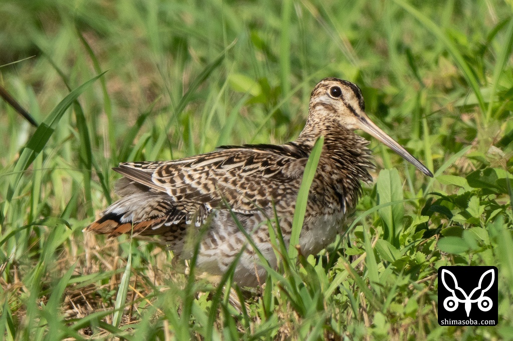 上と同個体の尾羽。警戒心が強めで草むらの中で採餌することが多かったです。