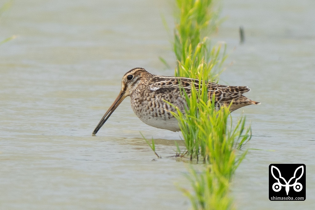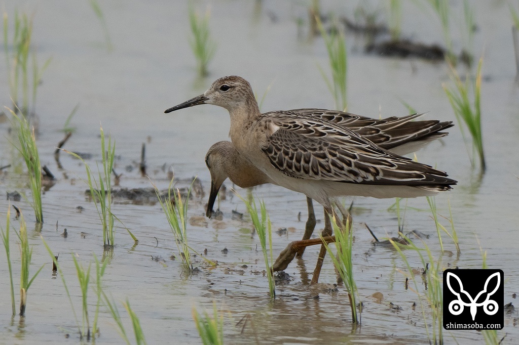 上の個体と一緒に行動していたチュウジシギ。