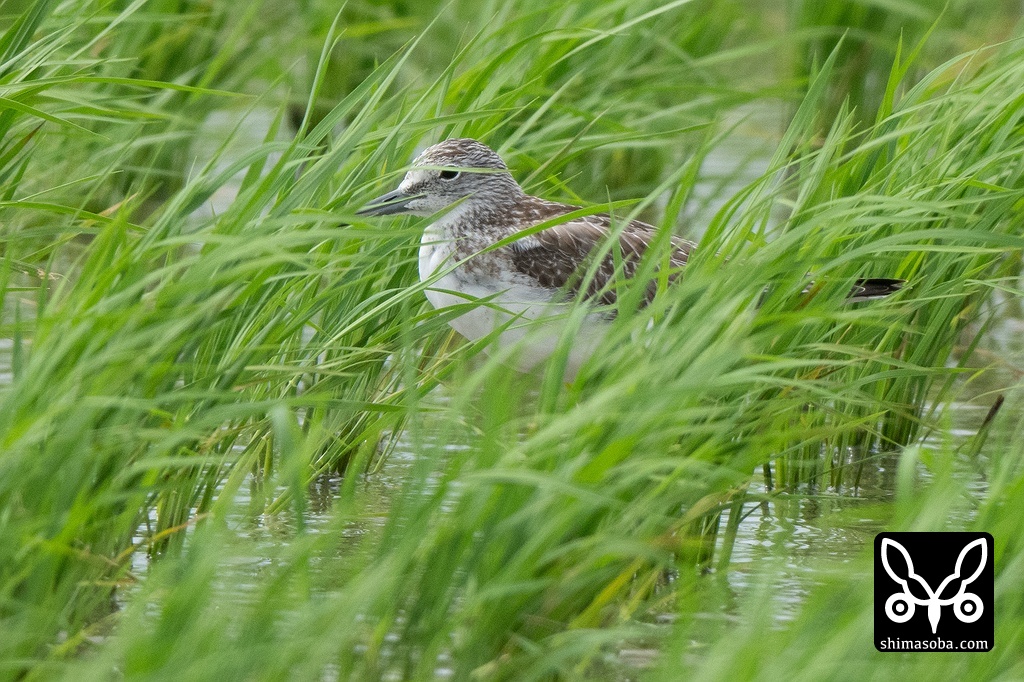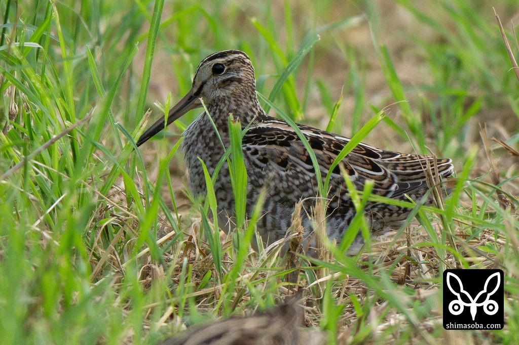 チュウジシギ幼鳥。黒々としているので本土でよく見られるタイプなんでしょうか。