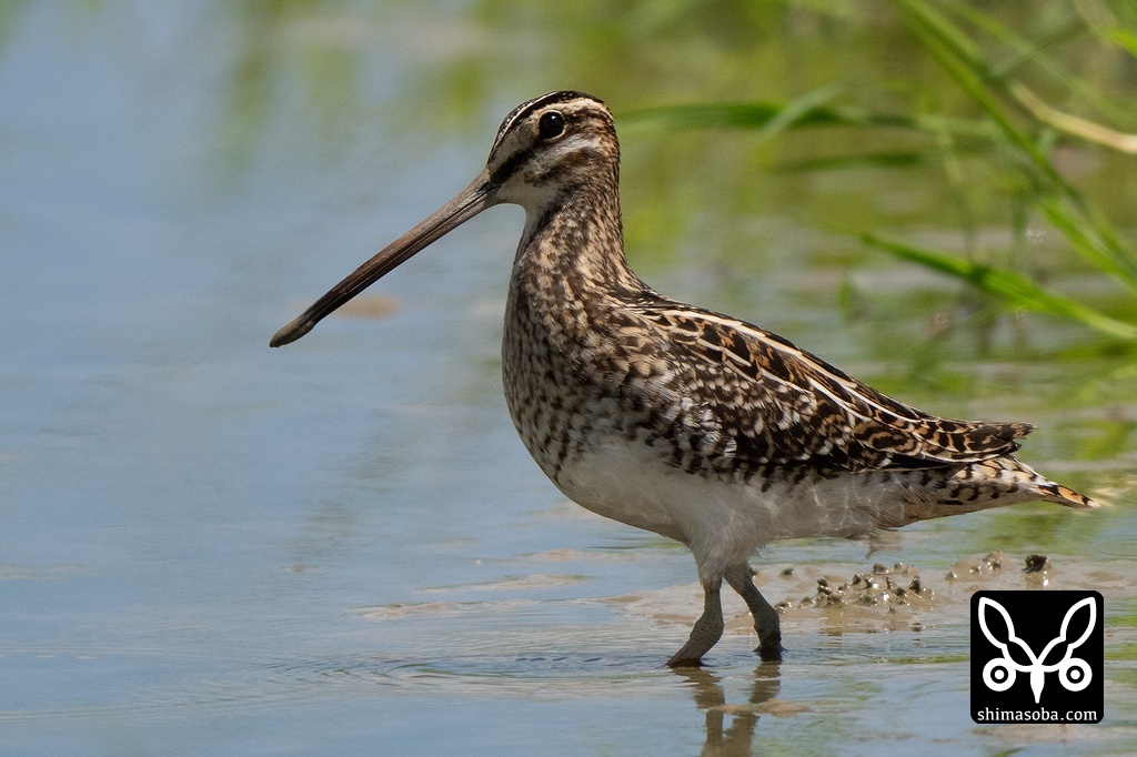 警戒心のないタシギ成鳥。