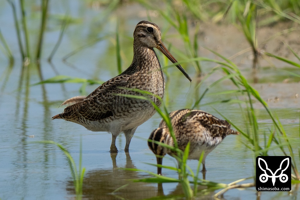 チュウジシギ(左)とタシギ。大きさの違いがよく分かりますね。