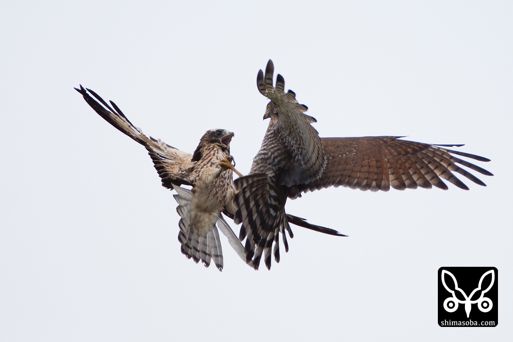 サシバの空中戦 2013年10月20日(旧暦では2013年9月16日) 成鳥サシバと幼鳥サシバが空中戦。 サシバ 左が幼鳥のサシバで右が成鳥。圧倒的に成鳥の勝利。 サシバ 遁走する幼鳥。^^; Category:野鳥Tagの付いた記事:EF600mm F4L IS USM / EXTENDER EF1.4×III / サシバ関連記事ブロンズトキ、アカショウビン、ズグロミゾゴイほか(2021年5月1日)カンムリワシ幼鳥、ハヤブサ、サシバの戦い(動画あり)(2022年1月13日)ミフウズラの戦いほか(動画あり)(2018年11月4日)アカアシシギのバトル(2018年8月23日)順調なツミの子育て(2017年6月22日)海岸のハシブトアジサシ、エリグロアジサシ、コアジサシ(2019年6月10日)サルハマシギとミユビシギ2羽に増量 キアシシギも増えてきた(2021年4月21日)流氷とオオワシ、オジロワシ(2014年3月1日)フクロウ日和(2014年5月25日)ノグチゲラ営巣とホントウアカヒゲ(動画あり)(2016年5月9日)