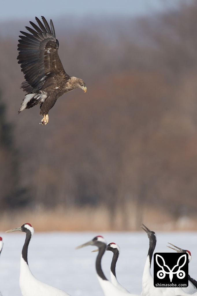 タンチョウなど 2014年3月1日(旧暦では2014年2月1日) 鶴居村、阿寒町でタンチョウ。 タンチョウ めちゃくちゃ寒かった…。 タンチョウ でかいねー。 オジロワシ / タンチョウ オジロワシがタンチョウの餌を横取りしにやってきた。 トビ トビも餌を目当てにやってきましたが、オジロワシの迫力におされてあまり捕れていませんでした。 オオハクチョウ 鳥インフルエンザも収束したようで、今回、ハクチョウはスノーモービルで追い払われなくなっていました。 Category:野鳥Tagの付いた記事:EF600mm F4L IS USM / オオハクチョウ / オジロワシ / タンチョウ / トビ関連記事ヤエヤマボタル寒かったけど飛びました(2013年5月3日)エゾフクロウ営巣木(道東探鳥旅行)(2015年2月25日)石垣島でバードウオッチング(カンムリワシ、コハクチョウ編)(2017年1月4日)雨の中のアカショウビン、カンムリワシ、ズグロミゾゴイ(2020年5月12日)オオヒキガエルの毒に対抗(2025年11月8日)