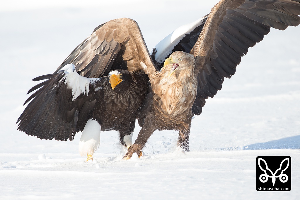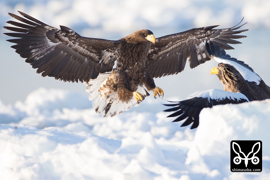 オオワシ同士のバトル。かなり激しいです。