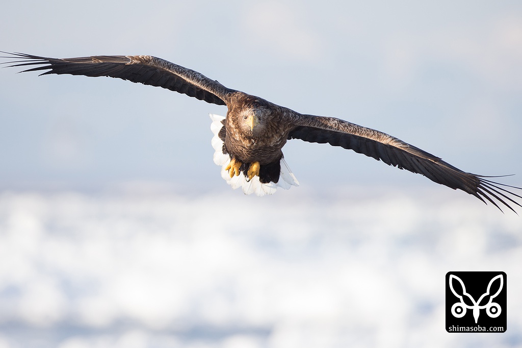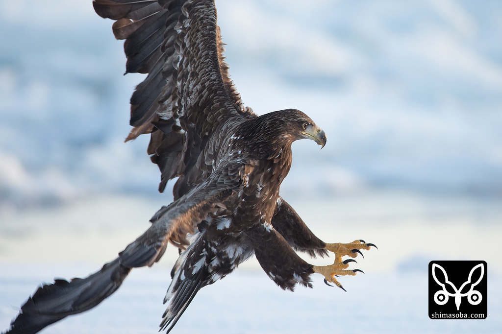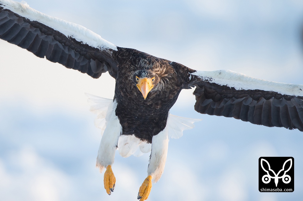 こちらへ飛んでくるオオワシ。全てが巨大です。^^;
