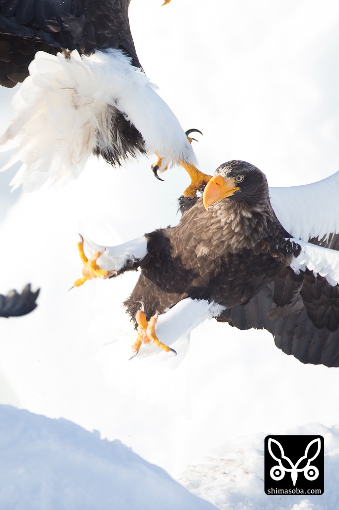 オオワシの空中戦。完全に爪を立てています。