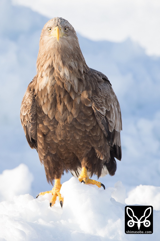 流氷に立つオジロワシ。