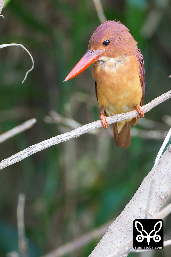 アカショウビンより一回り以上小さく見えます。警戒心が強いんで遠いー。^^;