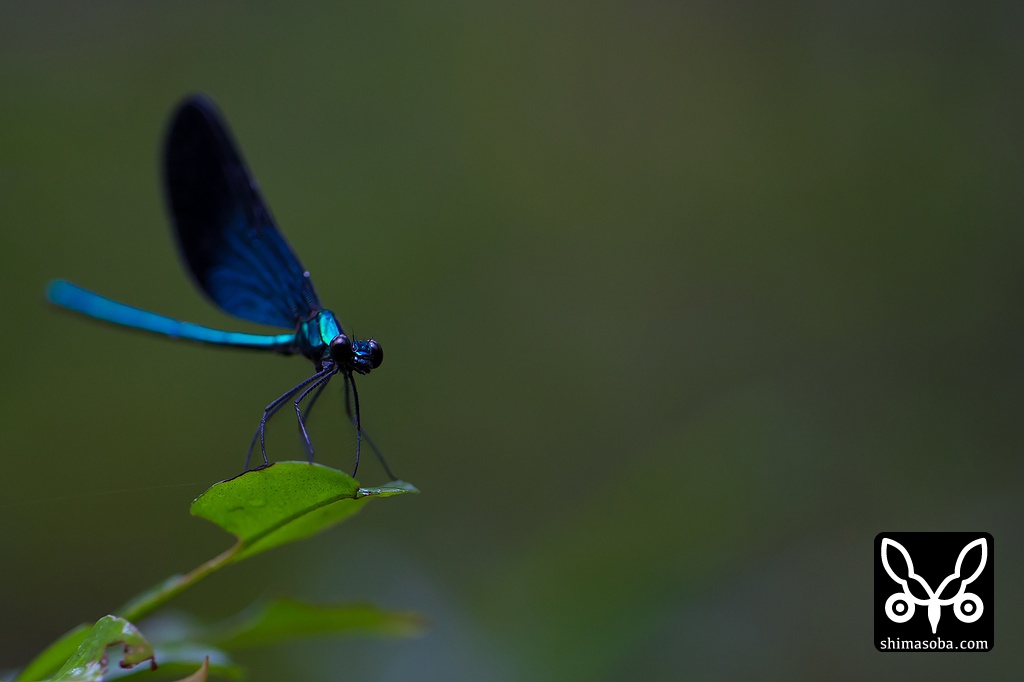 沢の近くにたくさんいたトンボ。メタリックな色合いが薄暗い環境で非常に鮮やかで美しかったです。